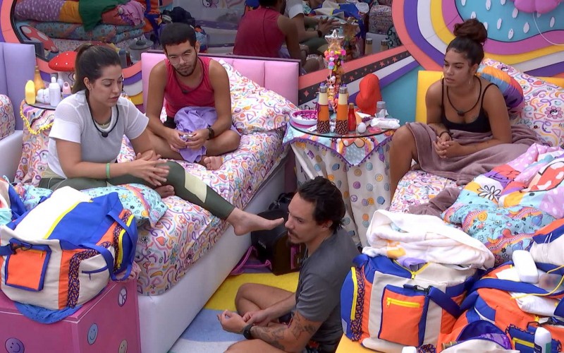 No Quarto Lollipop, Vinicius, Eliezer, Maria, Brunna Gonçalves, Eslovênia, Bárbara e LaÃs conversam sobre Natália, Linn da Quebrada e Jessilane no jogo.