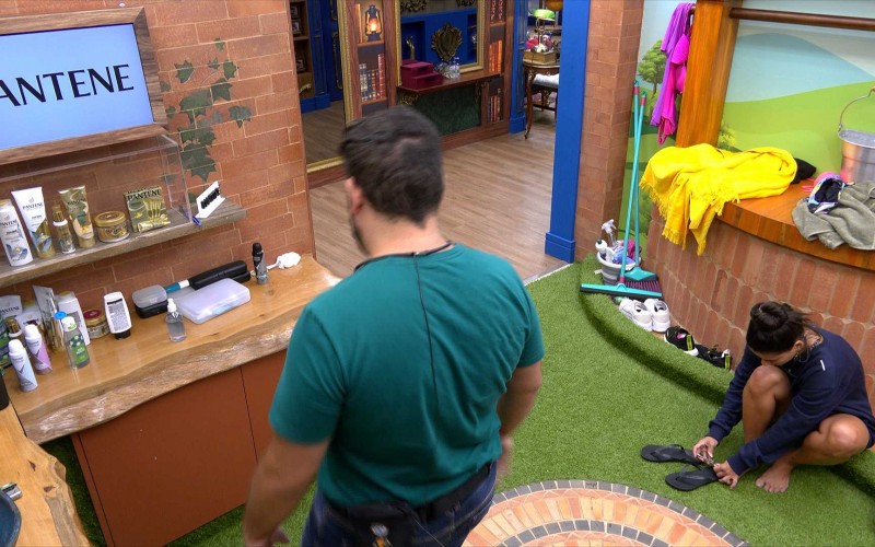 Fernanda e Michel conversam no banheiro da casa sobre jogo. A sister então dispara sem citar nomes: "Não dá para jogar com ela".