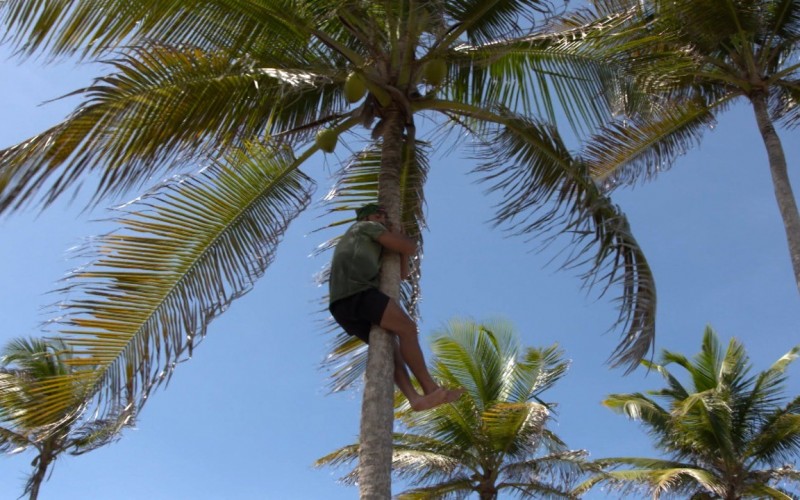 1) Kaysar escala coqueiro gigante para tentar pegar coco